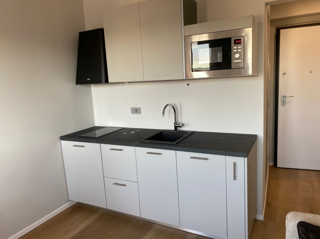Al settimo e ultimo piano di un palazzo signorile, attico monolocale di mq. 25, arredato e completamente ristrutturato, con riscaldamento e acqua calda centralizzati, ascensore e portineria. Splendida vista a sud sul Duomo e il Quadrilatero della Moda