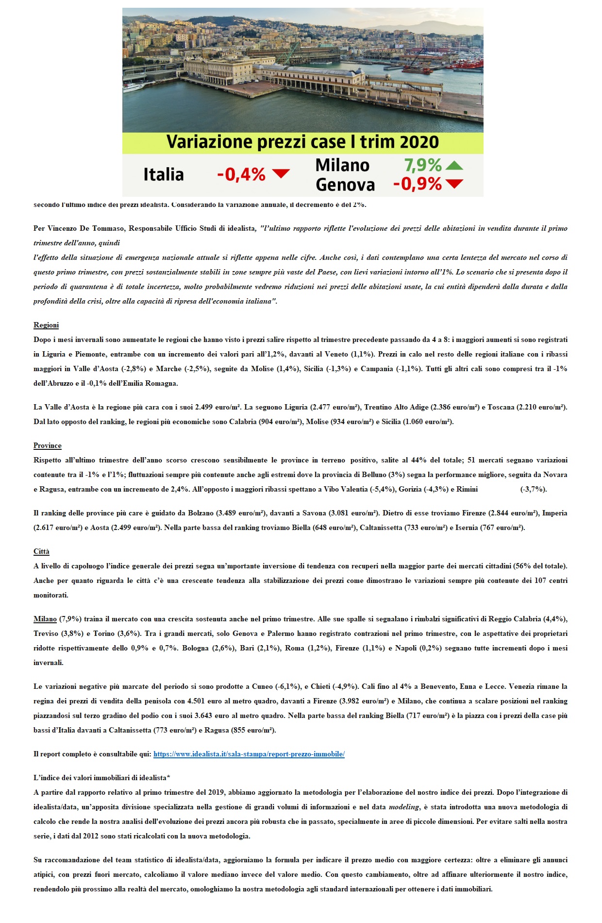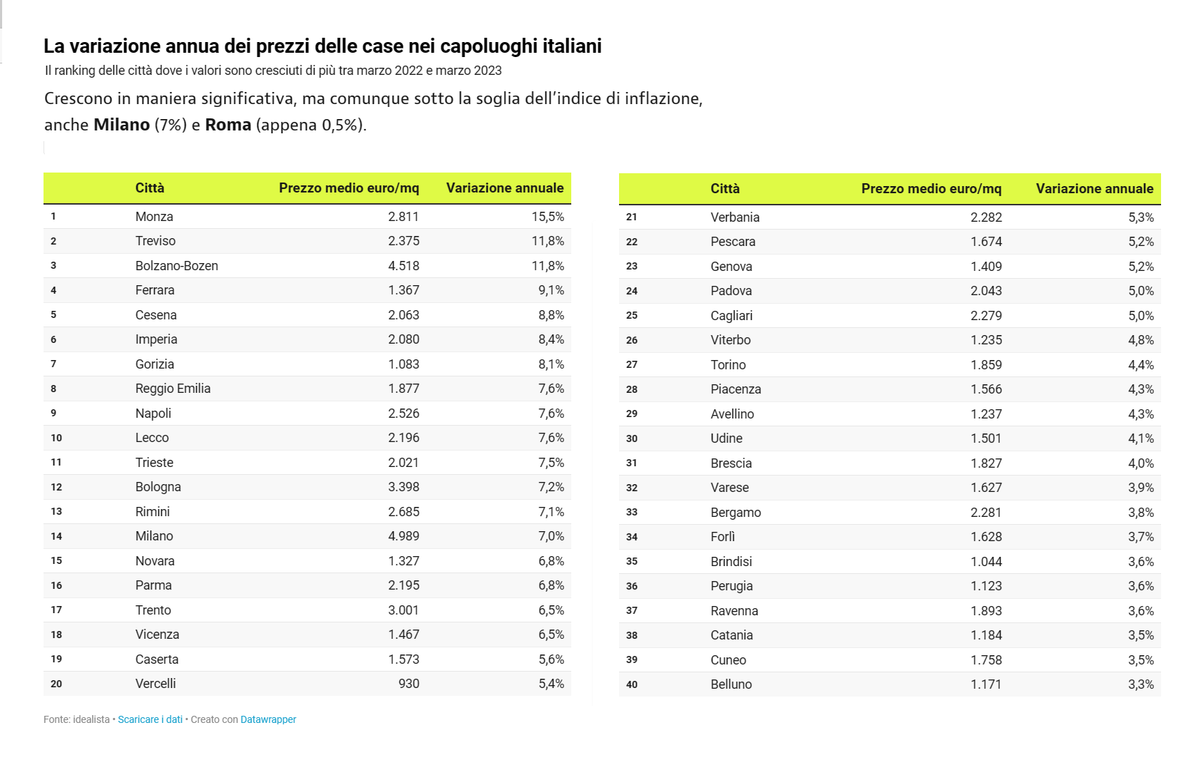 VARIAZIONE ANNUA PREZZI DEGLI IMMOBILI- Capoluoghi di Provincia