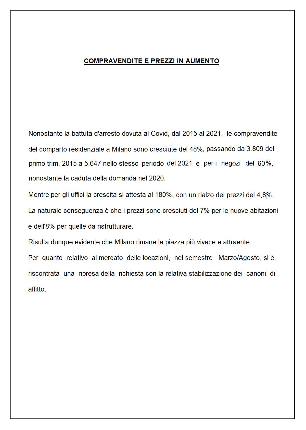 ANDAMENTO MERCATO IMMOBILIARE 2021 - Fonte Concommercio Milano