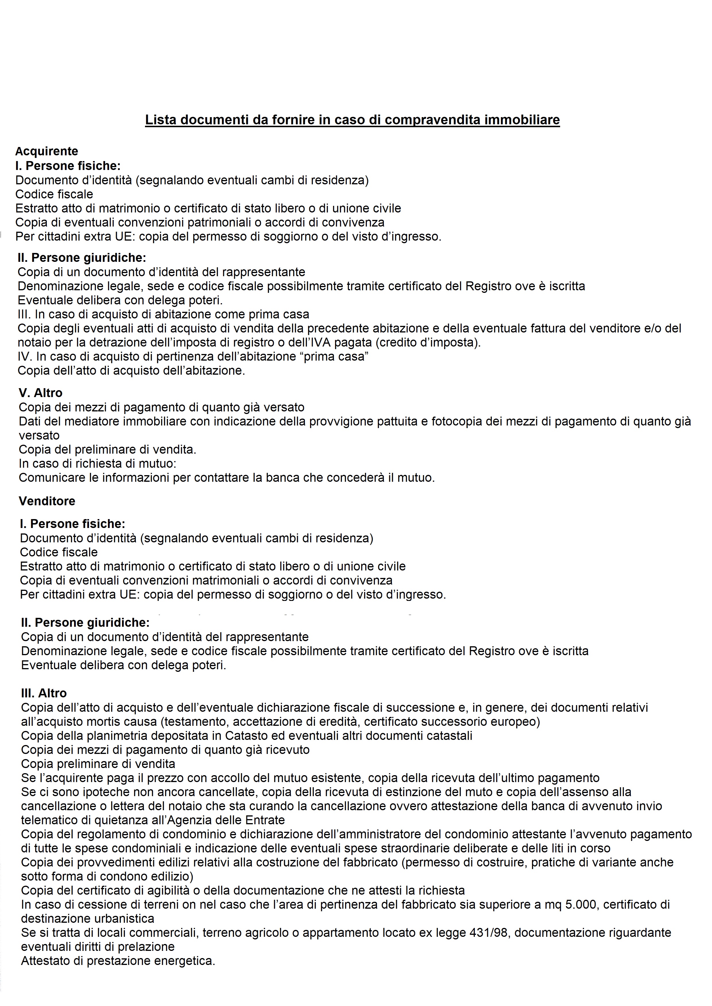 ATTO DI COMPRAVENDITA IMMOBILIARE- Lista dei documenti da presentare